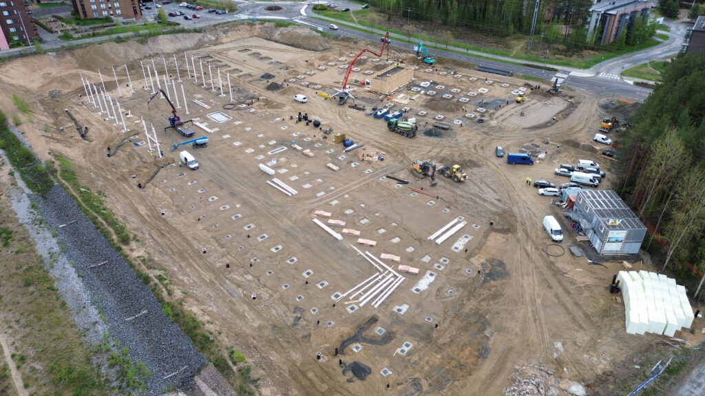 Rakenteilla oleva massiivinen toimitilahanke.